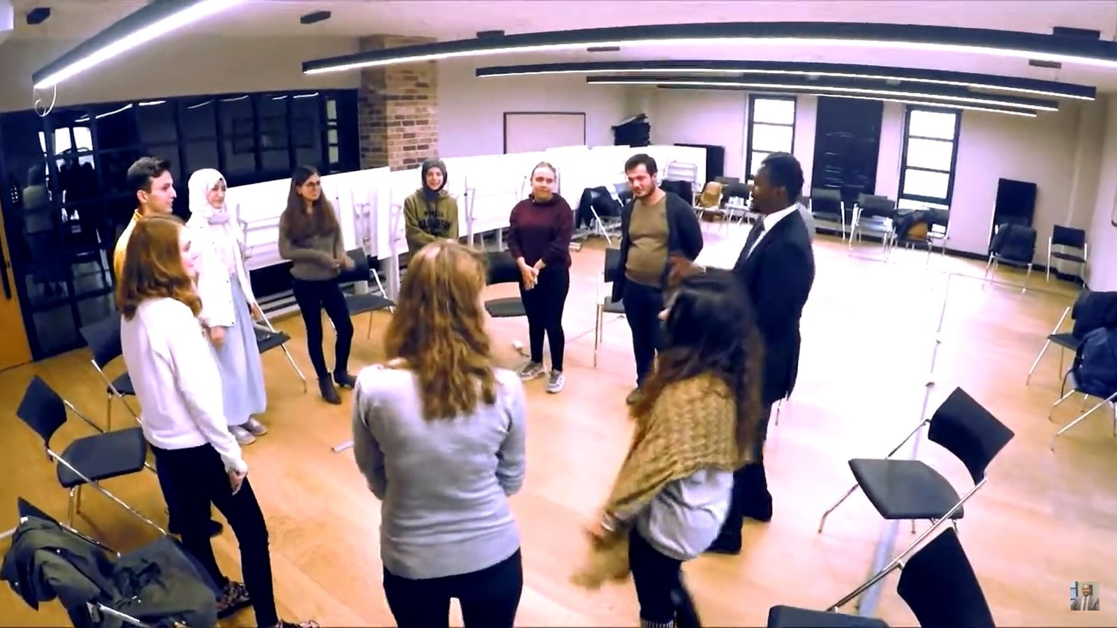 - “Find a space to stand in. When I clap my hands, walk