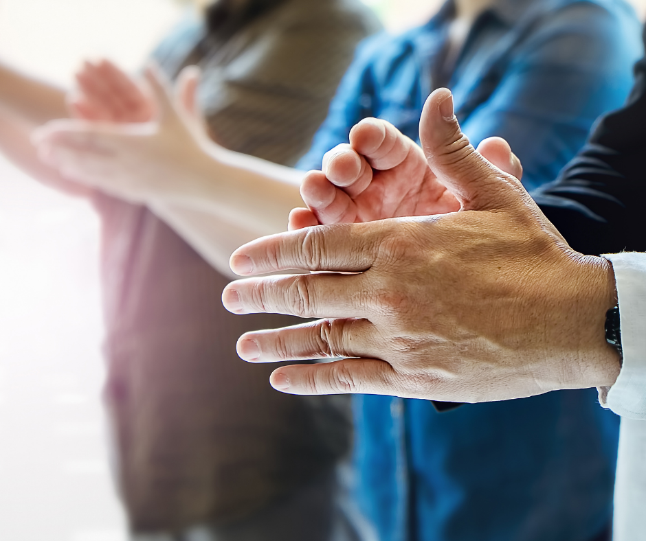 Structured as an elimination game, same rules apply. If someone makes a ‘mistake,’ for example, a person claps when they shouldn’t, or is late, etc, they are asked to step aside, sit down or whatever and enjoy the continuing action. Keep going until one person remains, and give them a round of applause!