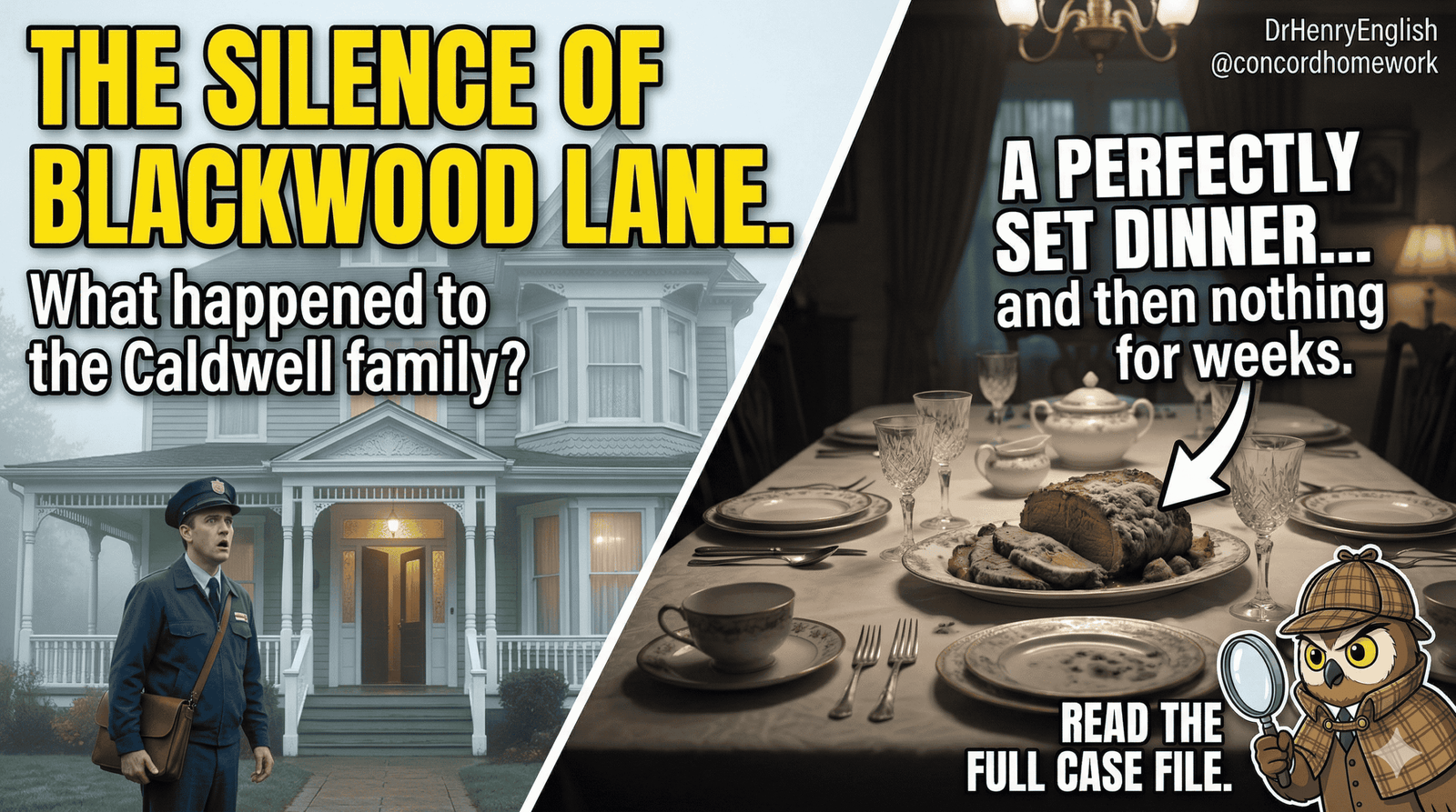 Arthur noticed the front door standing slightly ajar, swaying rhythmically in the damp draft. Driven by an instinctive worry, he stepped inside. The scene that greeted him was not one of chaotic violence, but of eerie stillness. In the dining room, a table was perfectly set for four people with fine china and crystal glasses. However, the roast beef dinner on the plates was covered in a thick, fuzzy layer of grey mold. It had been sitting there, untouched, for weeks. The Caldwell family—Elias, Sarah, and their two children—had vanished, leaving their wallets on the counter and their cars in the driveway. The house wasn’t empty; it felt as though it was holding its breath.