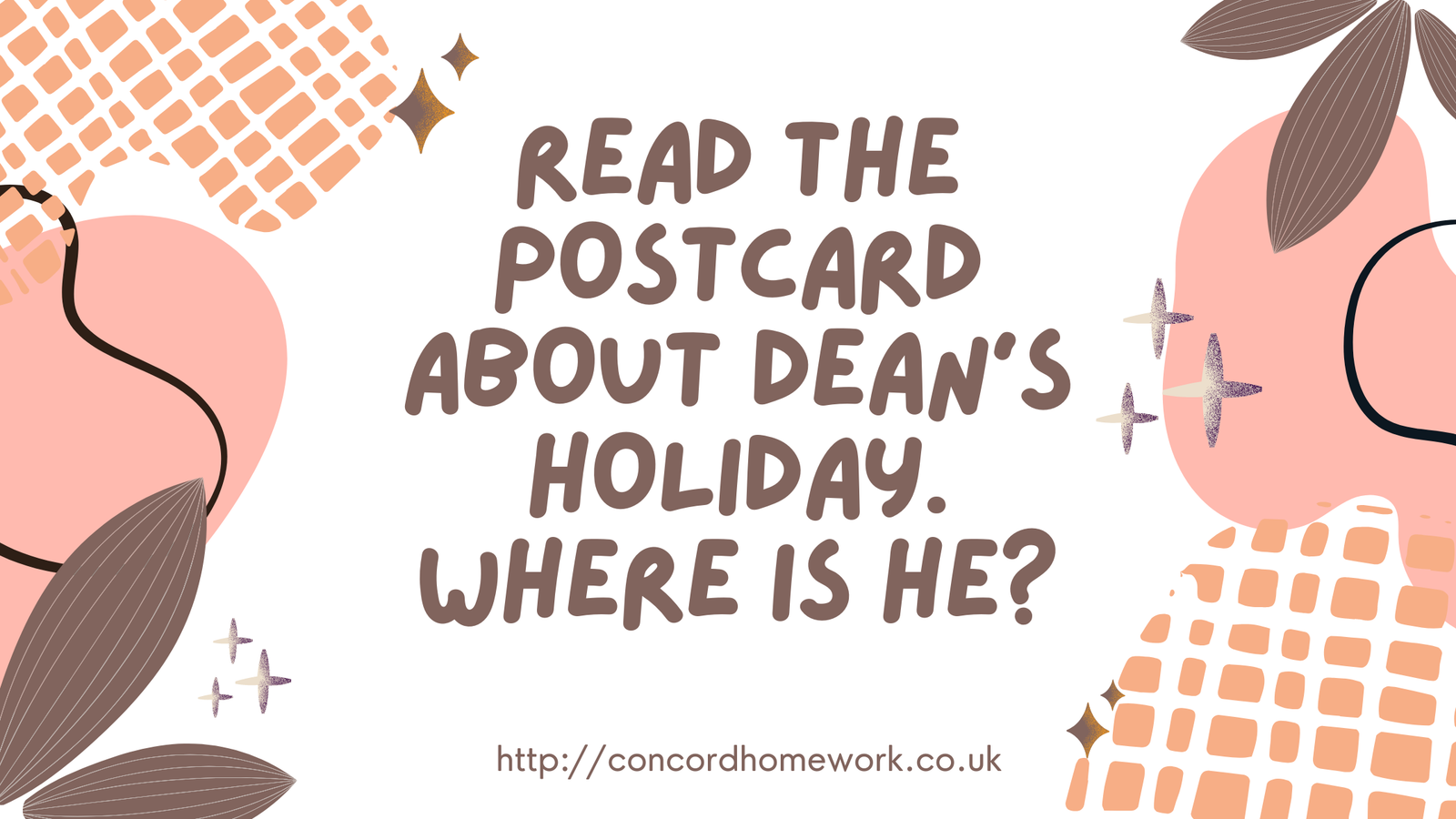 - Part B: Comprehension Questions: Answer questions about Dean’s holiday based on the postcard. This tests your understanding of the text and helps you practice answering questions in English.